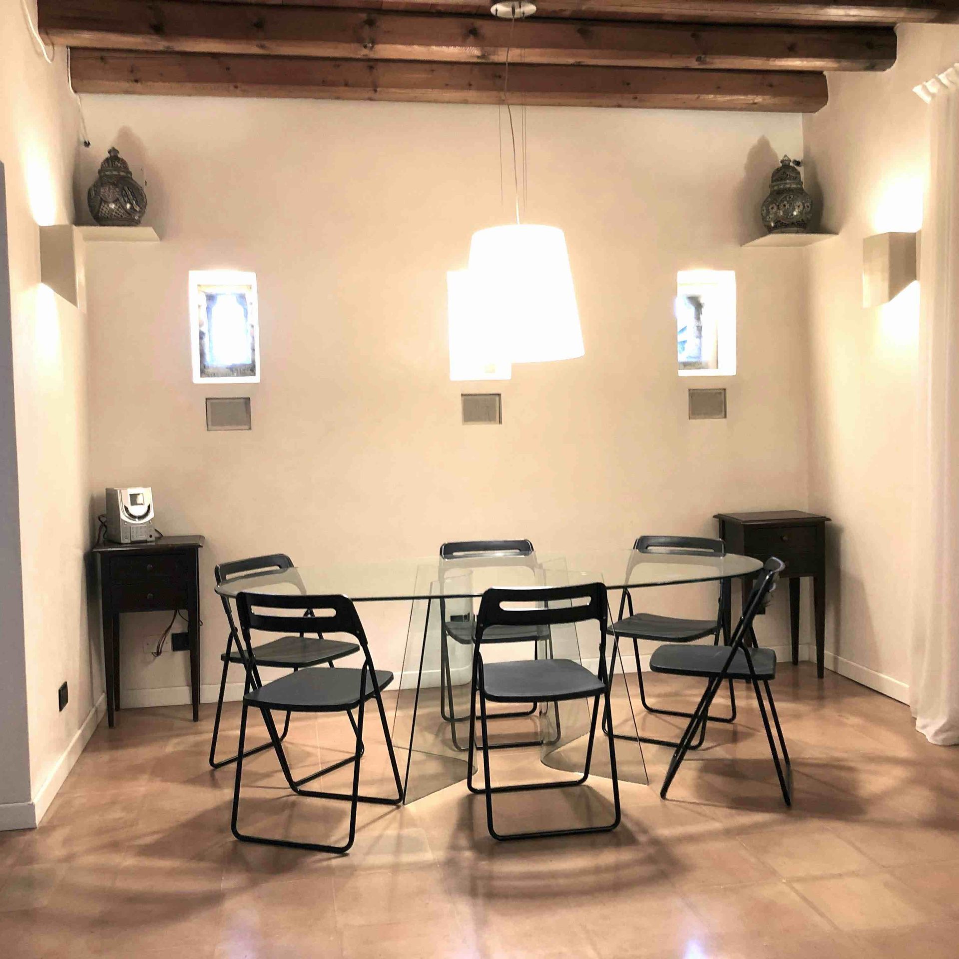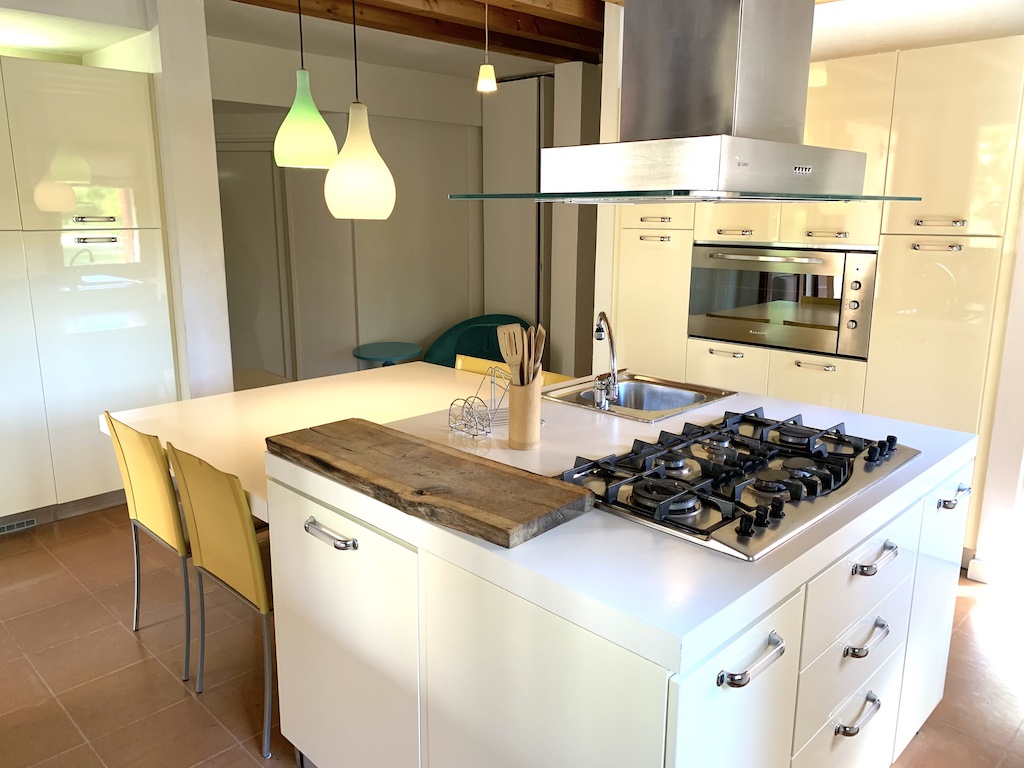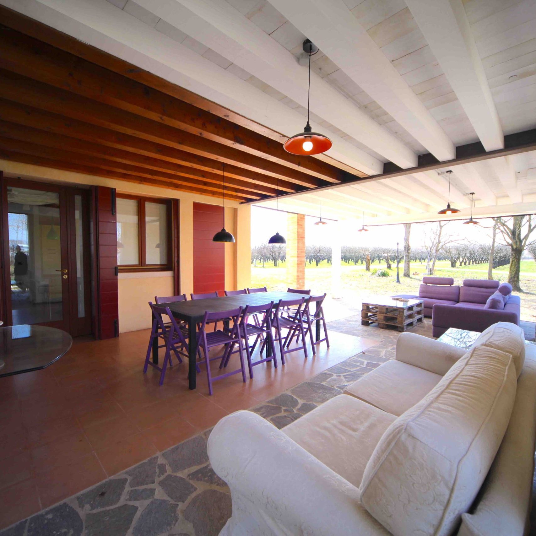 The Andrea apartment is situated entirely at the ground floor of the main building. Outside the apartment there is a wide portico with a relax area where you can have breakfast or read a book.The apartment is surrounded by fruit trees and an old oak.