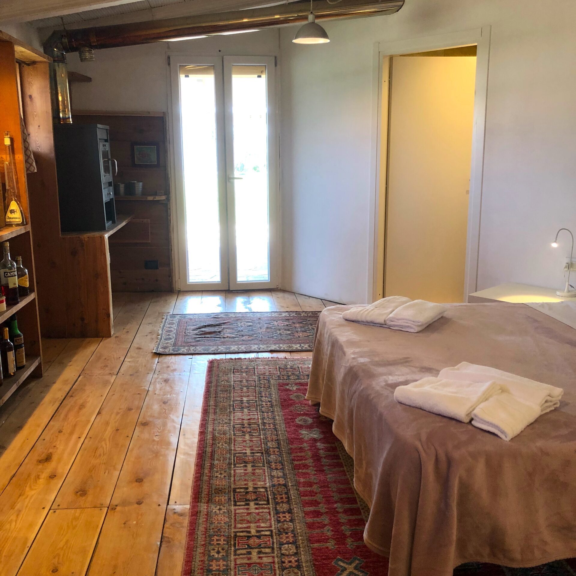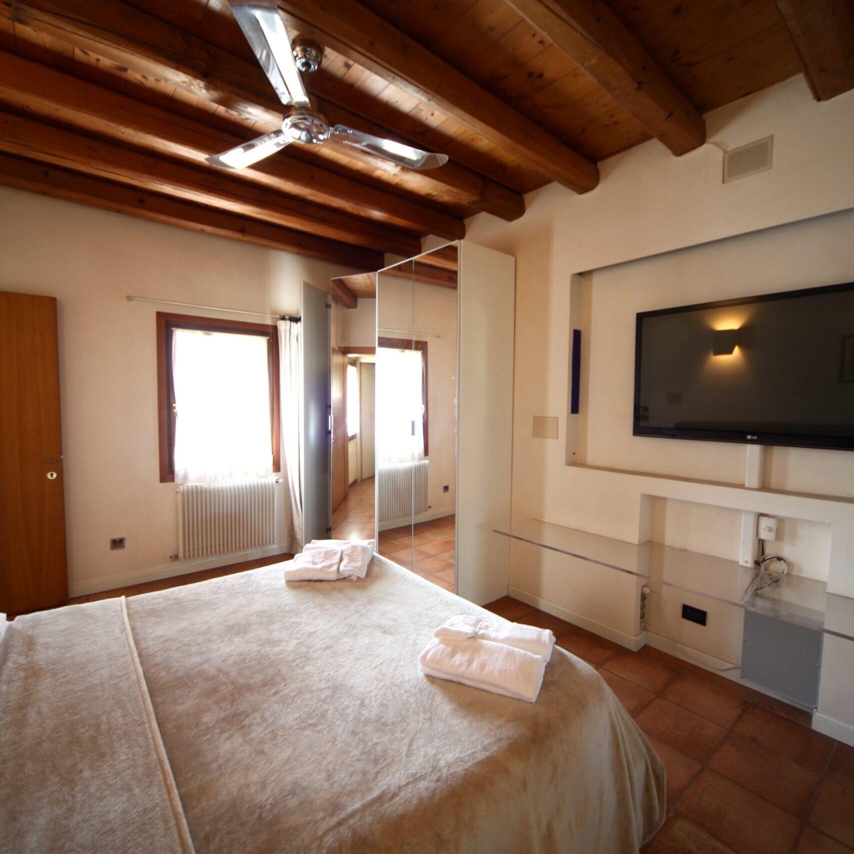 The apartment can accomodate up to 4 people divided in 2 rooms with two private bathrooms.
